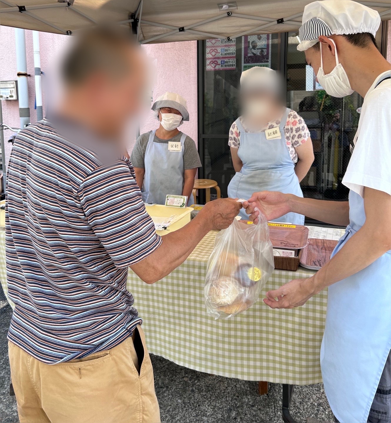 店頭に立つ利用者さんは、グループごとのローテーションで担当しており、それぞれ「リーダー」「会計」「記録」「お知らせ」といった役割に分かれて取り組んでいます。
