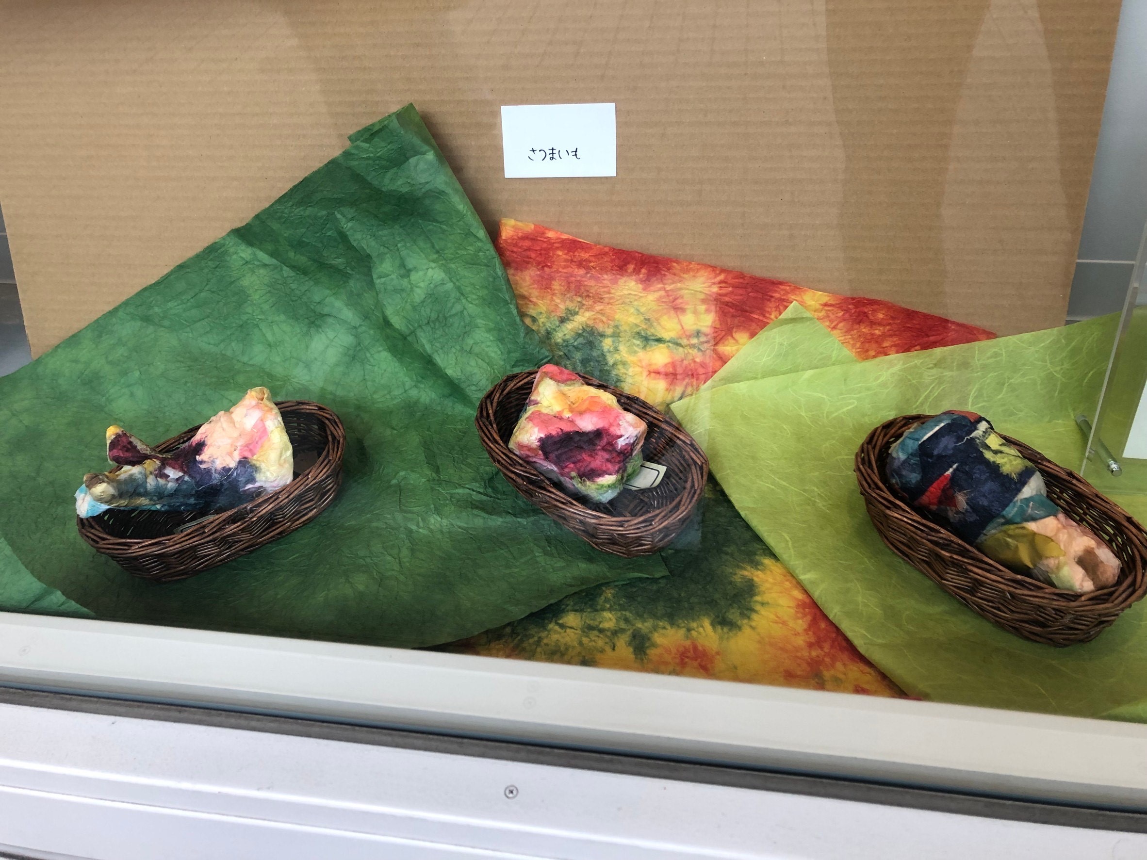 日頃、利用者さんが作った作品をお披露目し、制作意欲につながってもらいたい・・・という気持ちから、展示を行いました。